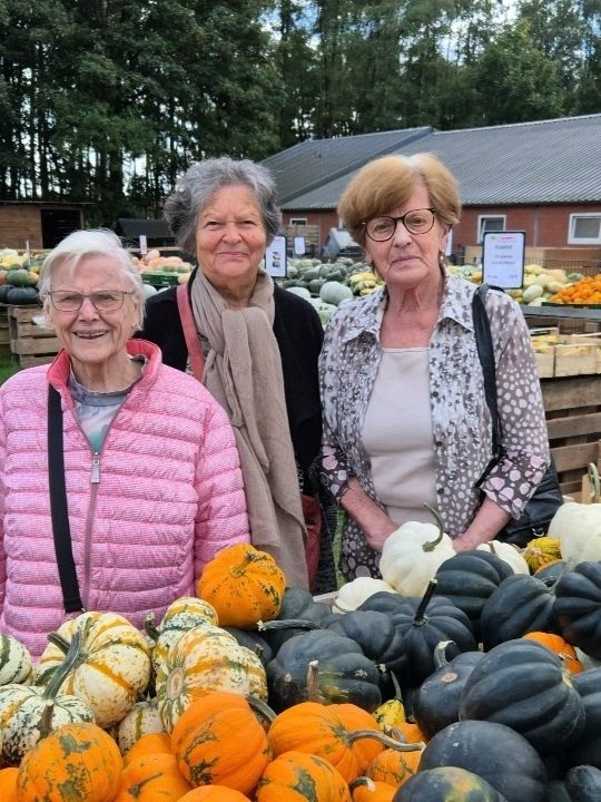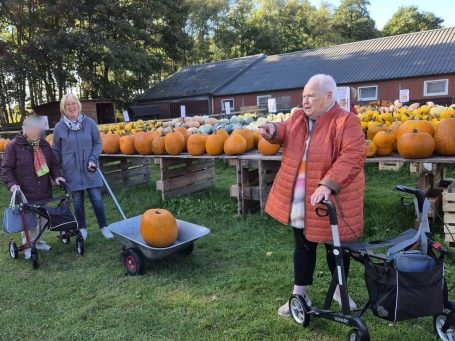 Die Tagespflege Herdicksbach stürmt den Hof Klöcker – mit guter Laune zwischen all den Kürbissen.