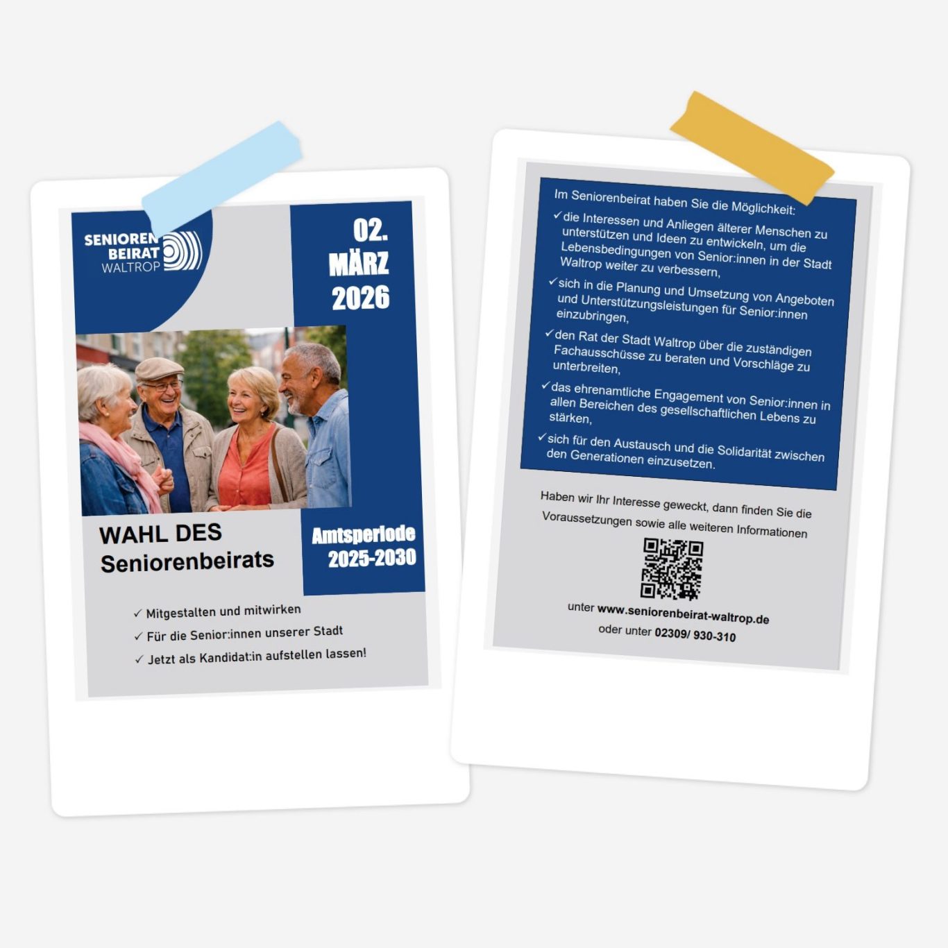 Hier ein Hinweis auf die Wahl des Seniorenbeirats der Stadt Waltrop. 📣